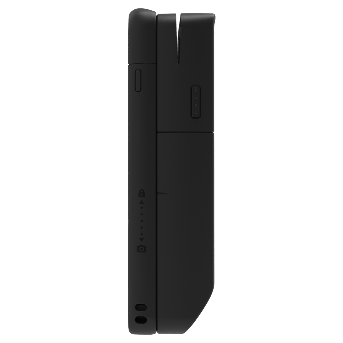 결제 장치가 아래로 미끄러져 내려가면서 카메라를 노출시키되 연결 상태를 유지합니다