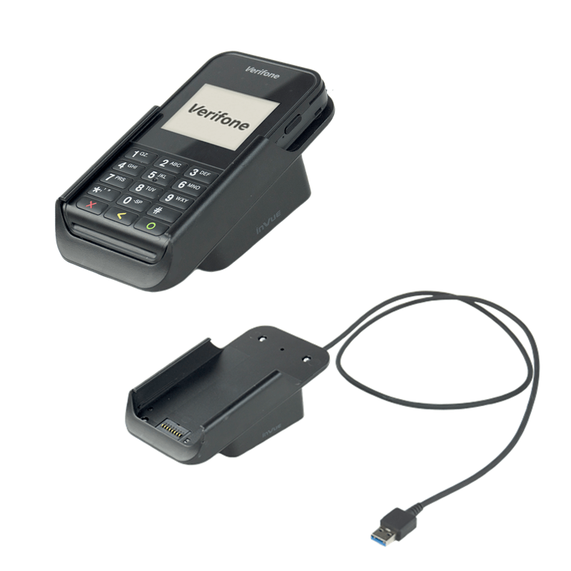 InVue Verifone e355용 충전 크래들을 제공합니다. e355를 충전 상태로 유지하고 사용 준비를 완료하는 완벽한 액세서리입니다.